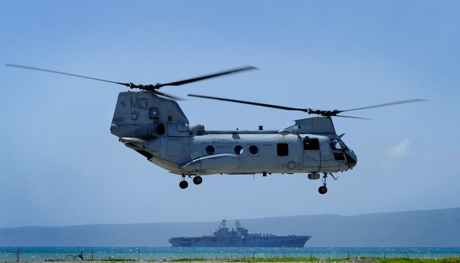 | Keywords: US Navy 100725-N-4153W-039 A CH-46E Sea Knight transporter helicopter takes off from a landing zone in Port de Paix, Haiti.jpg en PORT DE PAIX Haiti July 25 2010 A CH-46E Sea Knight transporter helicopter assigned to the Wild Goose of Marine Medium Helicopter Squadron HMM 774 takes off from a landing zone in Port de Paix Haiti to return to the multi-purpose amphibious assault ship USS Iwo Jima LHD 7 after delivering passengers and supplies Iwo Jima is off the coast of Haiti conducting Continuing Promise 2010 humanitarian civic assistance mission The assigned medical and engineering staff embarked aboard Iwo Jima will work with partner nation teams to provide medical dental veterinary and engineering assistance to eight different nations U S Navy photo by Mass Communication Specialist 2nd Class Bryan Weyers/Released 2010-07-25 100725-N-4153W-039 Navy http //www navy mil/view_image asp id 89393 U S Navy photo by Mass Communication Specialist 2nd Class Bryan Weyers PD-USGov-Military-Navy Aboard USS Iwo Jima LHD-7 CH-46 Sea Knight Ships in Port-de-Paix Helicopters in Port-de-Paix 2010 in Port-de-Paix 0725 July 2010 in Haiti 25 |