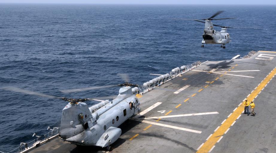 | Keywords: US Navy 100818-N-3729D-046 A CH-46 Sea Knight helicopter assigned to the White Knights of Helicopter Marine Medium Squadron (HMM 165) (Reinforced) launches aboard the amphibious assault ship USS Peleliu (LHA 5).jpg en NORTH ARABIAN SEA Aug 18 2010 A CH-46 Sea Knight helicopter assigned to the White Knights of Helicopter Marine Medium Squadron HMM 165 Reinforced launches aboard the amphibious assault ship USS Peleliu LHA 5 The CH-46 will join 11 other helicopters from Peleliu already on station in northern Pakistan The Peleliu Amphibious Ready Group is supporting the Pakistani government and military with helicopter heavy-lift capabilities in flooded regions of Pakistan U S Navy photo by Mass Communication Specialist 2nd Class Andrew Dunlap/Released 2010-08-18 100818-N-3729D-046 Navy http //www navy mil/view_image asp id 90538 U S Navy photo by Mass Communication Specialist 2nd Class Andrew Dunlap PD-USGov-Military-Navy Aboard USS Peleliu LHA-5 2010 Pakistan flood relief efforts |