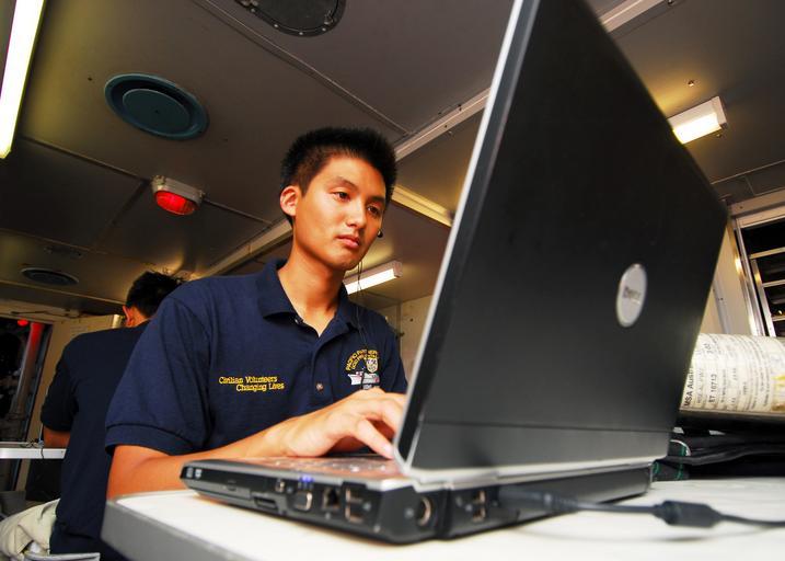 Keywords: US Navy 100830-N-4044H-028 Kevin To, a University of California, San Diego Pre-Dental Society volunteer embarked aboard the Royal Australian Navy landing ship heavy HMAS Tobruk (L50), works on his dental school application.jpg en ARAFURA SEA Aug 30 2010 Kevin To a University of California San Diego Pre-Dental Society volunteer embarked aboard the Royal Australian Navy landing ship heavy HMAS Tobruk L50 works on his dental school application A contingent of 64 Sailors and non-governmental organization members assigned to the Military Sealift Command hospital ship USNS Mercy T-AH 19 are embarked aboard Tobruk conducting the final leg of Pacific Partnership 2010 the fifth in a series of annual U S Pacific Fleet humanitarian and civic assistance endeavors aimed to strengthen regional partnerships U S Navy photo by Mass Communication Specialist 2nd Class Eddie Harrison/Released 2010-08-30 100830-N-4044H-028 Navy http //www navy mil/view_image asp id 91243 U S Navy photo by Mass Communication Specialist 2nd Class Eddie Harrison PD-USGov-Military-Navy HMAS Tobruk L 50 University of California San Diego Students in unidentified countries Dell laptops People using computers in the 2010s |