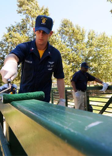 | Keywords: US Navy 100901-N-1004S-493 Chief Aviation Electronics Technician (Sel.) Justin Franklin, assigned to the aircraft carrier USS Ronald Reagan (CVN 76), paints the hand rail of a foot bridge at the Ronald Reagan Sports Park.jpg en TEMECULA Calif Sept 1 2010 Chief Aviation Electronics Technician Sel Justin Franklin assigned to the aircraft carrier USS Ronald Reagan CVN 76 paints the hand rail of a foot bridge at the Ronald Reagan Sports Park during a community service event in conjunction with the 7th annual San Diego CPO Pride Day More than 70 Ronald Reagan chiefs and chief selects participated in the day's events which began at the USS Midway Museum and continued with community service activities across the San Diego County area Ronald Reagan is at homeport in San Diego U S Navy photo by Mass Communication Specialist 3rd Class Shawn J Stewart/Released 2010-09-01 100901-N-1004S-493 Navy http //www navy mil/view_image asp id 91342 U S Navy photo by Mass Communication Specialist 3rd Class Shawn J Stewart PD-USGov-Military-Navy Aboard USS Ronald Reagan CVN-76 |