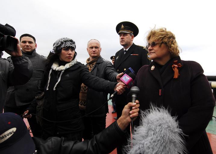 | Keywords: US Navy 100908-N-7638K-167 Sheila Gwaltney speaks to Russian media during an at-sea wreath laying ceremony for Sailors lost during World War II abo.jpg en MURMANSK Russia Sept 8 2010 Sheila Gwaltney the U S consul general to St Petersburg Russia speaks to Russian media during an at-sea wreath laying ceremony for Sailors lost during World War II aboard the liberty ship SS Thomas Donaldson Taylor is in Murmansk to celebrate the close World War II alliance between Russia and the U S and to honor veterans in both countries on the 65th anniversary of the end of World War II Taylor is on a scheduled deployment in the U S 6th Fleet area of responsibility U S Navy photo by Mass Communication Specialist 1st Class Edward Kessler/Released 2010-09-08 100908-N-7638K-167 Navy http //www navy mil/view_image asp id 91461 U S Navy photo by Mass Communication Specialist 1st Class Edward Kessler PD-USGov-Military-Navy Images from US Navy location MURMANSK Russia |