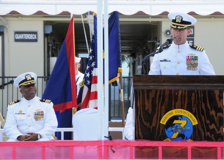 Keywords: US Navy 100917-N-1906L-006 Cmdr. David Suchyta, right, delivers his remarks to guests at a change of command ceremony.jpg en SANTA RITA Guam Sept 17 2010 Cmdr David Suchyta right delivers his remarks to guests at a change of command ceremony where Suchyta relieved Cmdr Bryon Johnson left as commanding officer of Maritime Expeditionary Security Squadron MSRON 7 MSRON-7 provides the nation with rapidly deployable detachments for force protection of personnel and assets as well as anti-terrorism operations U S Navy photo by Jesse Leon Guerrero/Released 2010-09-17 100917-N-1906L-006 Navy http //www navy mil/view_image asp id 91969 U S Navy photo by Jesse Leon Guerrero PD-USGov-Military-Navy Naval Base Guam Maritime Expeditionary Security Squadrons Change of command |