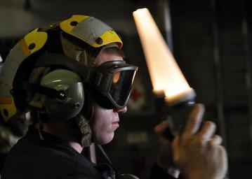 | Keywords: US Navy 100918-N-3620B-016 A Sailor guides a landing craft air cushion aboard USS Denver.jpg en PACIFIC OCEAN Sept 18 2010 Boatswain's Mate 2nd Class Jeffery Howard guides a landing craft air cushion LCAC into the well deck of the amphibious transport dock USS Denver LPD 9 Denver is part of the permanently forward-deployed Essex Amphibious Ready Group and is underway for a scheduled patrol in the western Pacific U S Navy photo by Mass Communication Specialist 3rd Class Bryan Blair/Released 2010-09-18 100918-N-3620B-016 Navy http //www navy mil/view_image asp id 91979 U S Navy photo by Mass Communication Specialist 3rd Class Bryan Blair PD-USGov-Military-Navy Aboard USS Denver LPD-9 People with safety earmuffs Marshalling wands |