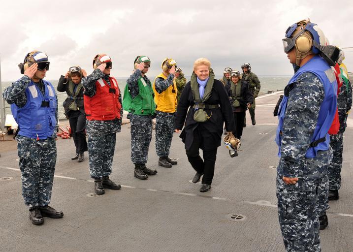 Keywords: US Navy 100921-N-5483N-057 USS Mount Whitney welcomes Lithuanian president.jpg en BALTIC SEA Sept 21 2010 The President of Lithuania Dalia Grybauskaite receives official honors from rainbow sideboys as she arrives aboard the amphibious command ship USS Mount Whitney LCC/JCC 20 Mount Whitney is operating in the Baltic region in support of exercise Jackal Stone JS10 2010 a 10-day special operations exercise featuring participation from Croatia Latvia Lithuania Poland Romania Ukraine and the United States U S Navy photo by Mass Communication Specialist 2nd Class Sylvia Nealy/Released 2010-09-21 100921-N-5483N-057 Navy http //www navy mil/view_image asp id 91999 U S Navy photo by Mass Communication Specialist 2nd Class Sylvia Nealy PD-USGov-Military-Navy Jackal Stone 2010 Aboard USS Mount Whitney LCC-20 Dalia GrybauskaitÄ— Rainbow sideboys |