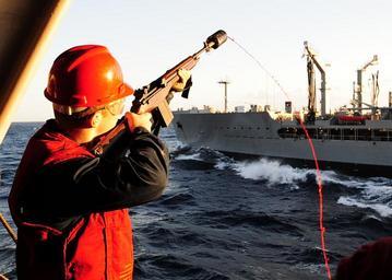Keywords: US Navy 101127-N-0939H-077 Airman Sean Nugent shoots a shot-line to the Military Sealift Command's Fleet Replenishment Oiler USNS Tippecanoe (T-AO.jpg en West of the Korean Peninsula Nov 27 2010 Airman Sean Nugent shoots a shot-line to the Military Sealift Command's Fleet Replenishment Oiler USNS Tippecanoe T-AO 199 as it pulls alongside USS George Washington CVN 73 during a replenishment at sea George Washington is in the waters west of the Korean peninsula in preparation of a training exercise with the Republic of Korea ROK Navy This exercise reinforces U S commitment to the ROK regional partners and to freedom of movement throughout the western Pacific U S Navy photo by Mass Communication Specialist Seaman Apprentice Alysia Hernandez/Released 2010-11-27 101127-N-0939H-077 Navy http //www navy mil/view_image asp id 94544 U S Navy photo by Mass Communication Specialist Seaman Apprentice Alysia Hernandez PD-USGov-Military-Navy USNS Tippecanoe T-AO-199 M14 rifle fireing shot line |