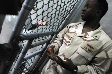 Keywords: US Navy 110210-N-4936C-147 Shipâ^euro,^trade,s Serviceman 3rd Class Darold Johnsonbrown, a Joint Detention Group barber, speaks to a detainee about.jpg en GUANTANAMO BAY Cuba Feb 10 2011 Shipâ s Serviceman 3rd Class Darold Johnsonbrown a Joint Detention Group barber speaks to a detainee about trimming his beard in Camp VI Johnsonbrown is attached to the Navy Expeditionary Guard Battalion which provides a portion of the guard force inside the detention facilities U S Navy photo by Mass Communication Specialist 1st Class David P Coleman/Released 2011-02-10 110210-N-4936C-147 Navy http //www navy mil/view_image asp id 97572 U S Navy photo by Mass Communication Specialist 1st Class David P Coleman PD-USGov-Military-Navy Camp 6 Guantanamo 2010 at the Guantanamo Bay Naval Base Taken with NIKON D300S |