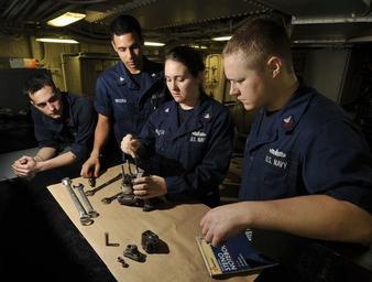 | Keywords: US Navy 110224-N-DR144-026 Sailors conduct maintenance on a fuel oil air cut-out valve.jpg en ARABIAN SEA Feb 24 2011 Machinist's Mate 1st Class Christopher Atkins right assigned to the reactor department aboard the Nimitz-class aircraft carrier USS Carl Vinson CVN 70 supervises as Machinist's Mate 3rd Class Amber Taylor disassembles a fuel oil air cut-out valve for the forward emergency diesel generators as Engineman 3rd Class Miguel Rivera and Engineman 2nd Class Timothy Baker look on The Carl Vinson Carrier Strike Group is deployed supporting maritime security operations and theater security cooperation efforts in the U S 5th Fleet area of responsibility U S Navy photo by Mass Communication Specialist 2nd Class James R Evans/Released 2011-02-24 110224-N-DR144-026 Navy http //www navy mil/view_image asp id 97907 U S Navy photo by Mass Communication Specialist 2nd Class James R Evans PD-USGov-Military-Navy Aboard USS Carl Vinson CVN-70 |