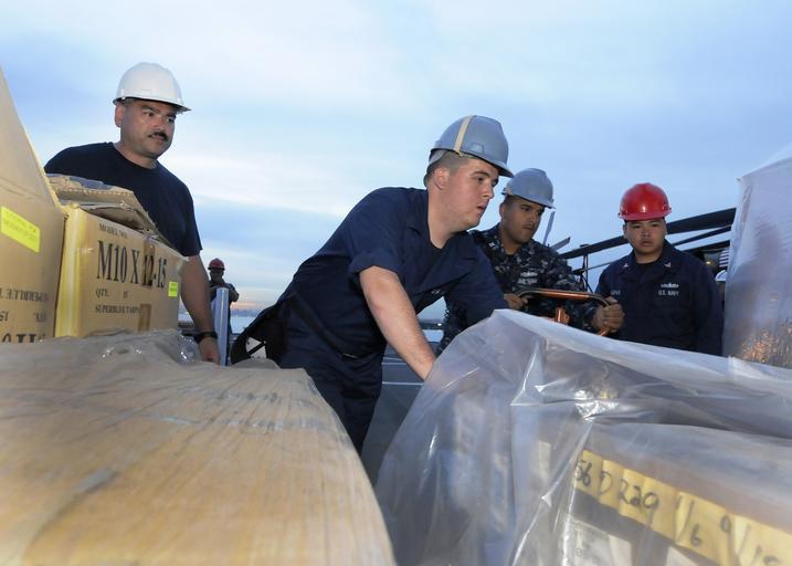 Keywords: US Navy 110311-N-5716H-290 Sailors load humanitarian assistance supplies aboard the U.S. 7th Fleet command ship USS Blue Ridge (LCC 19) in Singapor.jpg en SINGAPORE March 11 2011 Master Chief Information Systems Technician Lonnie Gillian left Ship's Serviceman Seaman William Cody Gunner's Mate 1st Class Eduardo Soto and Operation's Specialist 2nd Class Glennaldrin Mupas load humanitarian assistance supplies aboard the U S 7th Fleet command ship USS Blue Ridge LCC 19 in Singapore to ensure the ship and crew are ready if directed to support earthquake and tsunami relief operations in Japan U S Navy photo by Mass Communication Specialist 1st Josh Huebner\Released 2011-03-11 110311-N-5716H-290 Navy http //www navy mil/view_image asp id 98296 U S Navy photo Personality rights PD-USGov-Military-Navy Aboard USS Blue Ridge LCC-19 Operation Tomodachi in March 2011