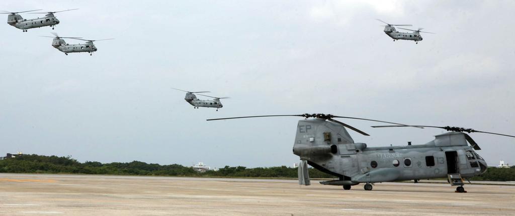 | Keywords: US Navy 110312-M-5425B-002 CH-46E Sea Knight helicopters assigned to Marine Medium Helicopter Squadron (HMM) 265, depart for Naval Air Facility Ats.jpg en MARINE CORPS AIR STATION FUTENMA Okinawa March 12 2011 CH-46E Sea Knight helicopters assigned to Marine Medium Helicopter Squadron HMM 265 depart for Naval Air Facility Atsugi on mainland Japan to provide assistance after an 8 9 magnitude earthquake and a tsunami struck Japan The helicopters will fly more than 1 000 miles over open water with emergency equipment U S Marine Corps photo by Lance Cpl Dengrier Baez/Released 2011-03-12 110312-M-5425B-002 Navy http //www navy mil/view_image asp id 98302 U S Marine Corps photo by Lance Cpl Dengrier Baez PD-USGov-Military-Navy Marine Corps Air Station Futenma Operation Tomodachi in March 2011 Marine Medium Helicopter Squadron 265 |