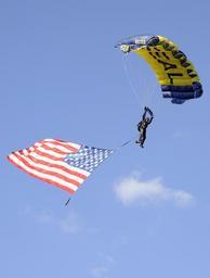 | Keywords: US Navy 110319-N-5366T-140 Chief Special Warfare Operator (SEAL) Justin Gauny performs at the Star of Austin Fair and Rodeo during Austin Navy Week.jpg en AUSTIN Texas March 19 2011 Chief Special Warfare Operator SEAL Justin Gauny assigned to the U S Navy parachute demonstration team the Leap Frogs performs at the Star of Austin Fair and Rodeo during Austin Navy Week Navy Weeks are designed to showcase the investment Americans have made in their Navy as global force for good and increase awareness in cities that do not have a significant Navy presence U S Navy photo by Mass Communication 2nd Class Michelle Turner/Released 2011-03-19 110319-N-5366T-140 Navy http //www navy mil/view_image asp id 98791 U S Navy photo by Mass Communication 2nd Class Michelle Turner PD-USGov-Military-Navy Images from US Navy location Austin Texas United States Navy Parachute Team Austin Navy Week |