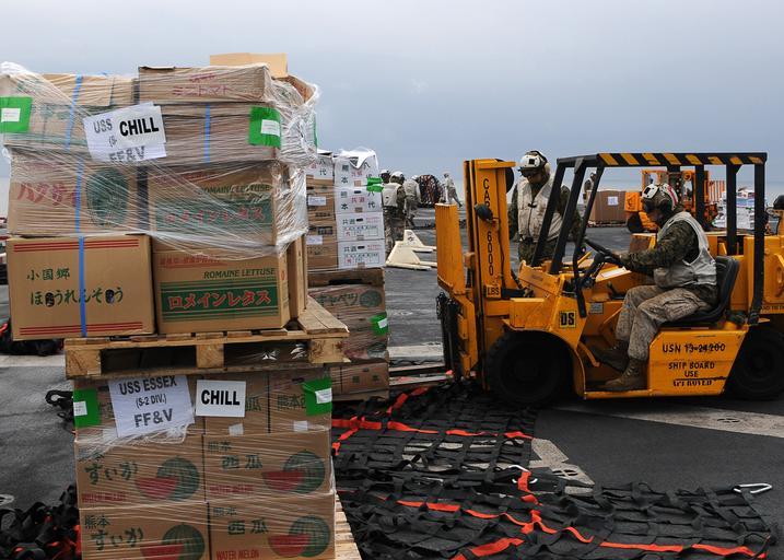 Keywords: US Navy 110321-N-4743B-114 Marines load pallets of supplies on the flight deck of the forward-deployed amphibious assault ship USS Essex (LHD 2) du.jpg en PACIFIC OCEAN March 21 2011 Marines load pallets of supplies on the flight deck of the forward-deployed amphibious assault ship USS Essex LHD 2 during a vertical replenishment Essex USS Harpers Ferry LSD 49 and USS Germantown LSD 42 with the embarked 31st Marine Expeditionary Unit are currently operating off the coast of Hachinohe in northeastern Japan in support of Operation Tomodachi U S Navy photo by Mass Communication Specialist 3rd Class Adam M Bennett/Released 2011-03-21 110321-N-4743B-114 Navy http //www navy mil/view_image asp id 98856 U S Navy photo by Mass Communication Specialist 3rd Class Adam M Bennett PD-USGov-Military-Navy Aboard USS Essex LHD-2 Operation Tomodachi in March 2011