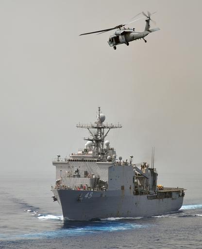 | Keywords: US Navy 110330-N-ZS029-464 An MH-60 Sea Hawk helicopter flies past USS Comstock (LSD 45) as the ship prepares to receive fuel and supplies.jpg en INDIAN OCEAN March 30 2011 An MH-60 Sea Hawk helicopter assigned to the Wildcards of Helicopter Sea Combat Squadron HSC 23 flies past the amphibious dock landing ship USS Comstock LSD 45 as the ship prepares to receive fuel and supplies Comstock is part of the Boxer Amphibious Ready Group underway supporting maritime security operations and theater security cooperation efforts in the U S 5th Fleet area of responsibility U S Navy photo by Mass Communication Specialist 3rd Class Trevor Welsh/Released 2011-03-30 110330-N-ZS029-464 Navy http //www navy mil/view_image asp id 99423 U S Navy photo by Mass Communication Specialist 3rd Class Trevor Welsh PD-USGov-Military-Navy Aboard USS Comstock LSD-45 MH-60S Seahawk Helicopter Sea Combat Squadron 23 United States Navy |