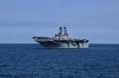 Keywords: US Navy 110409-N-AG285-366 The amphibious assault ship USS Bataan (LHD 5) conducts a training exercise off the coast of North Carolina.jpg en ATLANTIC OCEAN April 9 2011 The amphibious assault ship USS Bataan LHD 5 conducts a training exercise off the coast of North Carolina The Bataan Amphibious Ready Group deployed ahead of its original schedule to relieve units from the Kearsage Amphibious Ready Group in the Mediterranean Sea U S Navy photo by Mass Communication Specialist 3rd Class Desiree D Green/Released 2011-04-09 110409-N-AG285-366 Navy http //www navy mil/view_image asp id 99776 U S Navy photo by Mass Communication Specialist 3rd Class Desiree D Green PD-USGov-Military-Navy General views of USS Bataan LHD-5 |