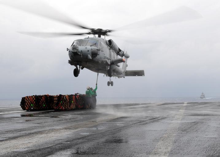 Keywords: US Navy 110423-N-SG869-021 Logistics Specialist 3rd John Laughlin, from Hanford and Logistics Specialist 1st Class Kristopher Forest hook a load o.jpg en PACIFIC OCEAN April 23 2011 Logistics Specialist 3rd John Laughlin from Hanford Calif and Logistics Specialist 1st Class Kristopher Forest from Watts Calif hook a load onto an SH-60H Sea Hawk helicopter assigned to the Black Knights of Helicopter Anti-Submarine Squadron HS 4 aboard the aircraft carrier USS Ronald Reagan CVN 76 during a vertical replenishment Ronald Reagan is operating in the Pacific Ocean U S Navy photo by Mass Communication Specialist 2nd Class Josh Cassatt/Released 2011-04-23 110423-N-SG869-021 Navy http //www navy mil/view_image asp id 100231 U S Navy photo by Mass Communication Specialist 2nd Class Josh Cassatt PD-USGov-Military-Navy USS Ronald Reagan CVN-76 underway replenishment SH-60 Seahawk Logistics Specialist Vertical replenishment |