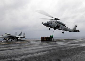 Keywords: US Navy 110423-N-SG869-047 Logistics Specialist Seaman Immanuel Carter and Logistics Specialist 1st Class Kristopher Forest hook a load onto an SH.jpg en PACIFIC OCEAN April 23 2011 Logistics Specialist Seaman Immanuel Carter from Los Angeles and Logistics Specialist 1st Class Kristopher Forest from Watts Calif hook a load onto an SH-60H Sea Hawk helicopter assigned to the Black Knights of Helicopter Anti-Submarine Squadron HS 4 aboard the aircraft carrier USS Ronald Reagan CVN 76 during a vertical replenishment Ronald Reagan is operating in the Pacific Ocean U S Navy photo by Mass Communication Specialist 2nd Class Josh Cassatt/Released 2011-04-23 110423-N-SG869-047 Navy http //www navy mil/view_image asp id 100232 U S Navy photo by Mass Communication Specialist 2nd Class Josh Cassatt PD-USGov-Military-Navy USS Ronald Reagan CVN-76 underway replenishment Logistics Specialist SH-60F Oceanhawk Helicopter Anti-Submarine Squadron 4 United States Navy Vertical replenishment |