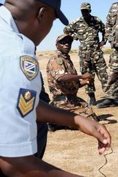 | Keywords: US Navy 110426-F-XM360-533 Armed Forces Namibia Defense Forces Warrant Officer Mashatu Jonas, center, sets up an electric firing system during the.jpg  en ARANDIS Namibia April 26 2011 Armed Forces Namibia Defense Forces Warrant Officer Mashatu Jonas center sets up an electric firing system during the practical application phase of demolition initiation procedures Sailors assigned to Explosive Ordnance Disposal Mobile Unit EODMU 11 Combined Joint Task Force-Horn of Africa is partnering with the Namibian Defense Forces EOD and Police Explosive Control Unit to support the Humanitarian Mine Action program by providing familiarization with International Mine Action Standards U S Air Force photo by Master Sgt Dawn Price/Released 2011-04-26 110426-F-XM360-533 Navy http //www navy mil/view_image asp id 100833 U S Air Force photo by Master Sgt Dawn Price PD-USGov-Military-Navy United States Navy in Arandis Military of Namibia |