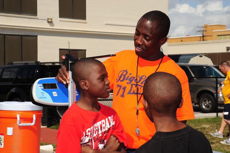 | Keywords: US Navy 110426-N-00332-114 Students measure the height and body weight of fourth and fifth grade students from Lindenwood Elementary School.jpg  en NEWPORT NEWS Va April 26 2011 Logistics Specialist 1st Class Alhaji M Kabba a command fitness leader aboard the aircraft carrier USS Theodore Roosevelt CVN 71 measures the height and body weight of a student from Lindenwood Elementary School Sailors assigned to Theodore Roosevelt spent 10 weeks mentoring the students about the Navy's culture of fitness to prepare them for participation in the Navy Physical Fitness Assessment U S Navy photo by Mass Communication Specialist Seaman Cory C Asato/Released 2011-04-26 110426-N-00332-114 Navy http //www navy mil/view_image asp id 100340 U S Navy photo by Mass Communication Specialist Seaman Cory C Asato PD-USGov-Military-Navy Aboard USS Theodore Roosevelt CVN-71 |