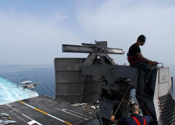 | Keywords: US Navy 110514-N-SB672-777 Electronics Technician 3rd Class Matthew Graham, from Jacksonville, Fla., performs maintenance on the SPN-43C air-search.jpg en ARABIAN GULF May 14 2011 Electronics Technician 3rd Class Matthew Graham from Jacksonville Fla performs maintenance on the SPN-43C air-search radar on the main mast of the aircraft carrier USS Ronald Reagan CVN 76 as an E-2C Hawkeye assigned to the Black Eagles of Airborne Early Warning Squadron VAW 113 approaches for a landing Ronald Reagan and Carrier Air Wing CVW 14 are deployed to the U S 5th Fleet area of responsibility conducting close-air support missions as part of Operations Enduring Freedom and New Dawn U S Navy photo by Mass Communication Specialist 3rd Class Dylan McCord/Released 2011-05-14 110514-N-SB672-777 Navy http //www navy mil/view_image asp id 100974 U S Navy photo by Mass Communication Specialist 3rd Class Dylan McCord PD-USGov-Military-Navy Maintenance on USS Ronald Reagan CVN-76 AN/SPN-43 Airborne Early Warning Squadron 113 United States Navy Northrop Grumman E-2C Hawkeye aircraft carrier landings Aircraft landing on USS Ronald Reagan CVN-76 |