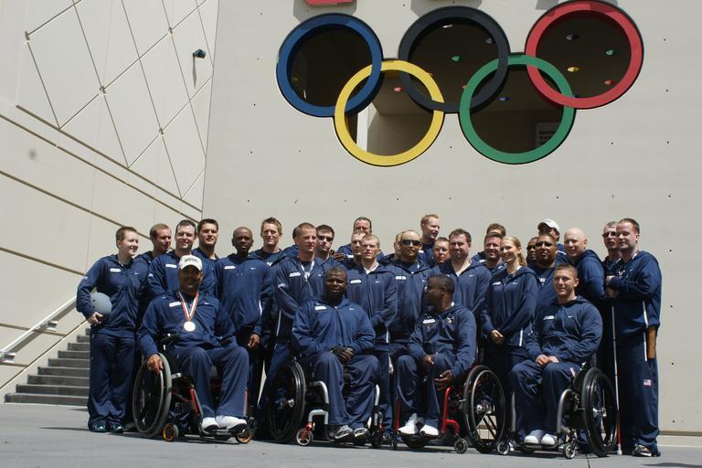 | Keywords: US Navy 110520-N-KE905-375 Team Navy-Coast Guard gathers at the U.S. Olympic Training Center in advance of the final Warrior Games 2011 wheelchair.jpg en COLORADO SPRINGS Colo May 20 2011 Team Navy/Coast Guard gathers at the U S Olympic Training Center in advance of the final Warrior Games 2011 wheelchair basketball competitions Warrior Games is a Paralympic-style sport event among 220 seriously wounded ill and injured service members from the U S Army Navy Air Force Marine Corps and Coast Guard U S Navy photo by Zona T Lewis/Released 2011-05-20 110520-N-KE905-375 Navy http //www navy mil/view_image asp id 101423 U S Navy photo by Zona T Lewis PD-USGov-Military-Navy Images from US Navy location COLORADO SPRINGS Colo |