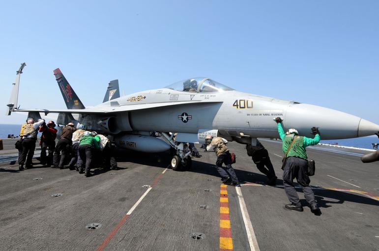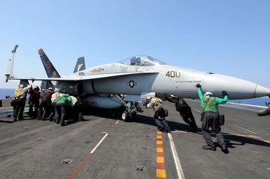 Keywords: US Navy 110616-N-QL471-299 Sailors maneuver an F-A-18A Hornet aboard the aircraft carrier USS George H.W. Bush (CVN 77).jpg en MEDITERRANEAN SEA June 16 2011 Sailors maneuver an F/A-18A Hornet aboard the aircraft carrier USS George H W Bush CVN 77 George H W Bush is deployed in support of maritime security operations and theater security cooperation efforts in the U S 6th Fleet area of responsibility on its first overseas deployment U S Navy photo by Mass Communication Specialist 3rd Class Billy Ho/Released 2011-06-16 110616-N-QL471-299 Navy http //www navy mil/view_image asp id 102728 U S Navy photo by Mass Communication Specialist 3rd Class Billy Ho PD-USGov-Military-Navy Aboard USS George H W Bush CVN-77 |