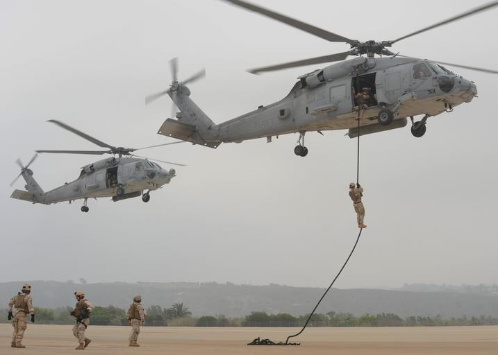 Keywords: US Navy 110624-N-NW961-265 Explosive ordnance disposal technicians rappel from an SH-60 Sea Hawk helicopter during Explosive Ordnance Disposal Grou.jpg en IMPERIAL BEACH Calif June 24 2011 Explosive ordnance disposal technicians rappel from an SH-60 Sea Hawk helicopter during Explosive Ordnance Disposal Group EODGRU 1 family day The event held as part of a ribbon cutting ceremony for a new facility for Explosive Ordnance Disposal Mobile Unit EODMU 11 included tours static displays a 5-kilometer run and an unveiling of a memorial recognizing fallen explosive ordnance disposal technicians U S Navy photo by Mass Communication Specialist 1st Class Michael O'Day/Released 2011-06-24 110624-N-NW961-265 Navy http //www navy mil/view_image asp id 103258 U S Navy photo by Mass Communication Specialist 1st Class Michael O'Day PD-USGov-Military-Navy Naval Outlying Landing Field Imperial Beach Fast roping Explosive Ordnance Disposal Mobile Unit 11