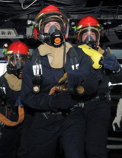 | Keywords: US Navy 110627-N-QL471-178 Sailors man a fire hose during a general quarters training exercise in the pilothouse aboard the aircraft carrier USS Ge.jpg en ARABIAN GULF June 27 2011 Sailors man a fire hose during a general quarters training exercise in the pilothouse aboard the aircraft carrier USS George H W Bush CVN 77 George H W Bush is deployed supporting maritime security operations and theater security cooperation efforts in the U S 5th Fleet area of responsibility on its first operational deployment U S Navy photo by Mass Communication Specialist 3rd Class Billy Ho/Released 2011-06-27 110627-N-QL471-178 Navy http //www navy mil/view_image asp id 103332 U S Navy photo by Mass Communication Specialist 3rd Class Billy Ho PD-USGov-Military-Navy Aboard USS George H W Bush CVN-77 Breathing masks Fire hoses Firefighting training in the United States Navy Self-contained breathing apparatus June 2011 People with gloves People with helmets Sailors from the United States Navy 2011 photographs United States Navy in the Persian Gulf 27 June |