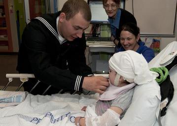Keywords: US Navy 110705-N-EA192-029 Hull Technician Fireman Apprentice Tim Alloggio, from Kinston, N.C., assigned to the guided-missile destroyer USS Fitzge.jpg en SYDNEY July 5 2011 Hull Technician Fireman Apprentice Tim Alloggio from Kinston N C assigned to the guided-missile destroyer USS Fitzgerald DDG 62 pins ribbons onto a girl's bib at Sydney Children's Hospital during a community service project Fitzgerald is one of six Arleigh Burke-class guided-missile destroyers assigned to Destroyer Squadron DESRON 15 and is visiting Sydney for a port call before participating in exercise Talisman Sabre U S Navy photo by Mass Communication Specialist 3rd Class Mikey Mulcare/Released 2011-07-05 110705-N-EA192-029 Navy http //www navy mil/view_image asp id 103899 U S Navy photo by Mass Communication Specialist 3rd Class Mikey Mulcare PD-USGov-Military-Navy Aboard USS Fitzgerald DDG-62 Talisman Sabre 2011 |