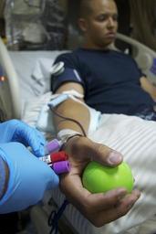 Keywords: US Navy 110720-N-ZC343-852 Aviation Boatswain's Mate (Fuel) 3rd Class Tyler Keith, from Moline, Ill., has blood drawn during a blood drive aboard t.jpg en SAN DIEGO July 20 2011 Aviation Boatswain's Mate Fuel 3rd Class Tyler Keith from Moline Ill has blood drawn during a blood drive aboard the amphibious assault ship USS Bonhomme Richard LHD 6 The blood drive was to supplement blood reserves for military personnel serving in Afghanistan and Iraq U S Navy photo by Senior Chief Mass Communication Specialist Joe Kane/Released 2011-07-20 110720-N-ZC343-852 Navy http //www navy mil/view_image asp id 104577 U S Navy photo by Senior Chief Mass Communication Specialist Joe Kane PD-USGov-Military-Navy Aboard USS Bonhomme Richard LHD-6 People donating blood in the United States Photographs by Joseph Kane |
