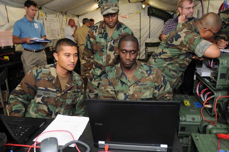 Keywords: US Navy 110720-N-LW591-008 Sailors test communications equipment during Trident Warrior 2011 at Joint Expeditionary Base Little Creek-Fort Story.jpg en VIRGINIA BEACH Va July 20 2011 Information Systems Technician 2nd Class Michael Smith left assigned to Riverine Squadron RIVRON 3 Operations Specialist 2nd Class Denise Sanders assigned to Expeditionary Training Group and Operations Specialist 1st Class Robert McGill assigned to Navy Expeditionary Combat Command test communications equipment during Trident Warrior 2011 at Joint Expeditionary Base Little Creek-Fort Story Trident Warrior is an annual fleet experiment focusing on new technology U S Navy photo by Mass Communication Specialist 2nd Class Steven Hoskins/Released 2011-07-20 110720-N-LW591-008 Navy http //www navy mil/view_image asp id 104624 U S Navy photo by Mass Communication Specialist 2nd Class Steven Hoskins PD-USGov-Military-Navy Joint Expeditionary Base Little Creek-Fort Story Trident Warrior 2011 |