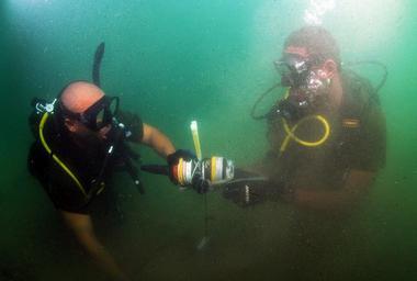 Keywords: US Navy 110728-N-XD935-195 Able Body Seaman Raynaldo Farquharson, left, and Able Body Seaman Omar Albury find an inert training mine on the sea flo.jpg en PORT ROYAL Jamaica July 28 2011 Royal Bahamas Defense Force divers Able Body Seaman Raynaldo Farquharson left and Able Body Seaman Omar Albury find an inert training mine on the sea floor utilizing a circle search line during joint diving search operations with Mobile Diving and Salvage Unit MDSU 2 MDSU-2 is participating in Navy Diver-Southern Partnership Station a multinational partnership engagement designed to increase interoperability and partner nation capacity through diving operations U S Navy photo by Mass Communication Specialist 1st Class Jayme Pastoric/Released 2011-07-28 110728-N-XD935-195 Navy http //www navy mil/view_image asp id 105019 U S Navy photo by Mass Communication Specialist 1st Class Jayme Pastoric PD-USGov-Military-Navy Images from US Navy location Port Royal Jamaica Underwater photographs of scuba divers Military people of the Bahamas |