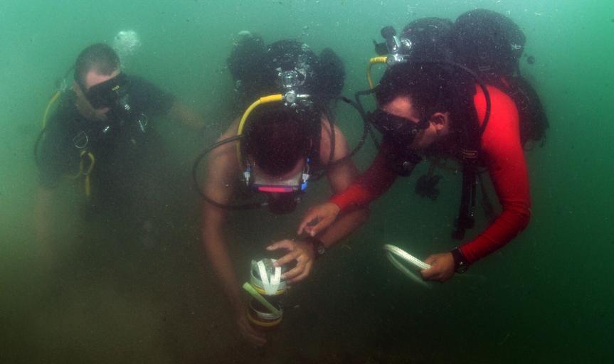 Keywords: US Navy 110728-N-XD935-136 Chief Hospital Corpsman Nathanael Warren, left, Antonio Sosa and Joni Paniagua find an inert training mine on the sea fl.jpg en PORT ROYAL Jamaica July 28 2011 Chief Hospital Corpsman Nathanael Warren left assigned to Mobile Diving and Salvage Unit MDSU 2 Guatemalan navy diver Antonio Sosa and Joni Paniagua find an inert training mine on the sea floor utilizing a circle search line during joint diving search operations MDSU-2 is participating in Navy Diver-Southern Partnership Station a multinational partnership engagement designed to increase interoperability and partner nation capacity through diving operations U S Navy photo by Mass Communication Specialist 1st Class Jayme Pastoric/Released 2011-07-28 110728-N-XD935-136 Navy http //www navy mil/view_image asp id 105017 U S Navy photo by Mass Communication Specialist 1st Class Jayme Pastoric PD-USGov-Military-Navy Images from US Navy location Port Royal Jamaica Underwater photographs of scuba divers |