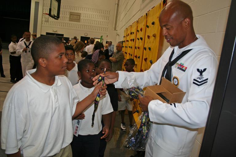 Keywords: US Navy 110819-N-ZL585-105 Information Systems Technician 2nd Class Christopher Abernathy, assigned to Navy Recruiting District, Michigan.jpg en INDIANAPOLIS Aug 19 2011 Information Systems Technician 2nd Class Christopher Abernathy assigned to Navy Recruiting District Michigan distributes Navy lanyards to students after a presentation on Navy careers at Brookside Elementary School during Indianapolis Navy Week 2011 one of 21 Navy weeks across the country this year Navy weeks are designed to showcase the investment Americans have made in their Navy and increase awareness in cities that do not have a significant Navy presence U S Navy photo by Chief Mass Communication Specialist Steve Johnson/Released 2011-08-19 110819-N-ZL585-105 Navy http //www navy mil/view_image asp id 106230 U S Navy photo by Chief Mass Communication Specialist Steve Johnson PD-USGov-Military-Navy Military in Indianapolis Indianapolis Navy Week