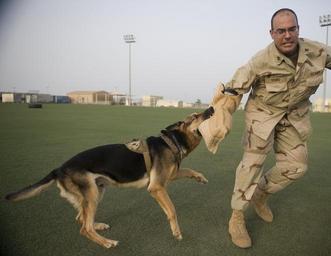 | Keywords: US Navy 110826-F-EL833-417 Rado, an 8-year-old German shepherd military working dog, bites Master-At-Arms 1st Class Patrick Yourg during a patrol t.jpg en CAMP LEMONNIER Djibouti Aug 26 2011 Rado an 8-year-old German shepherd military working dog bites Master-At-Arms 1st Class Patrick Yourg during a patrol training exercise U S Air Force photo by Staff Sgt Stephen Linch/Released 2011-08-26 110826-F-EL833-417 Navy http //www navy mil/view_image asp id 109716 U S Air Force photo by Staff Sgt Stephen Linch PD-USGov-Military-Navy Camp Lemonnier Military working dogs of the United States German Shepherd Dog |