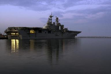| Keywords: US Navy 110826-N-ZC343-381 The Amphibious assault ship USS Bonhomme Richard (LHD 6) is moored at Naval Base San Diego before sunrise.jpg en SAN DIEGO Aug 26 2011 The Amphibious assault ship USS Bonhomme Richard LHD 6 is moored at Naval Base San Diego before sunrise U S Navy photo by Senior Chief Mass Communication Specialist Joe Kane/Released 2011-08-26 110826-N-ZC343-381 Navy http //www navy mil/view_image asp id 106442 U S Navy photo by Senior Chief Mass Communication Specialist Joe Kane PD-USGov-Military-Navy General views of USS Bonhomme Richard LHD-6 Photographs by Joseph Kane |