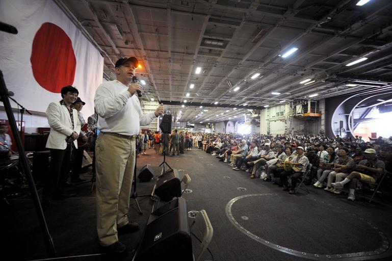 Keywords: US Navy 110827-N-IS680-030 Lt. Cmdr. Dave Hecht welcomes families and friends as USS George Washington (CVN 73) commences its friends and family da.jpg en YOKOSUKA Japan Aug 27 2011 Lt Cmdr Dave Hecht public affairs officer aboard the aircraft carrier USS George Washington CVN 73 welcomes families and friends as the ship commences its friends and family day cruise into Tokyo Bay The cruise allowed Sailors' families and friends to get a first-hand look at what life for their Sailor is like at sea U S Navy photo by Mass Communication Specialist Seaman Alysia R Hernandez/Released 2011-08-27 110827-N-IS680-030 Navy http //www navy mil/view_image asp id 106490 U S Navy photo by Mass Communication Specialist Seaman Alysia R Hernandez PD-USGov-Military-Navy Aboard USS George Washington CVN-73 |