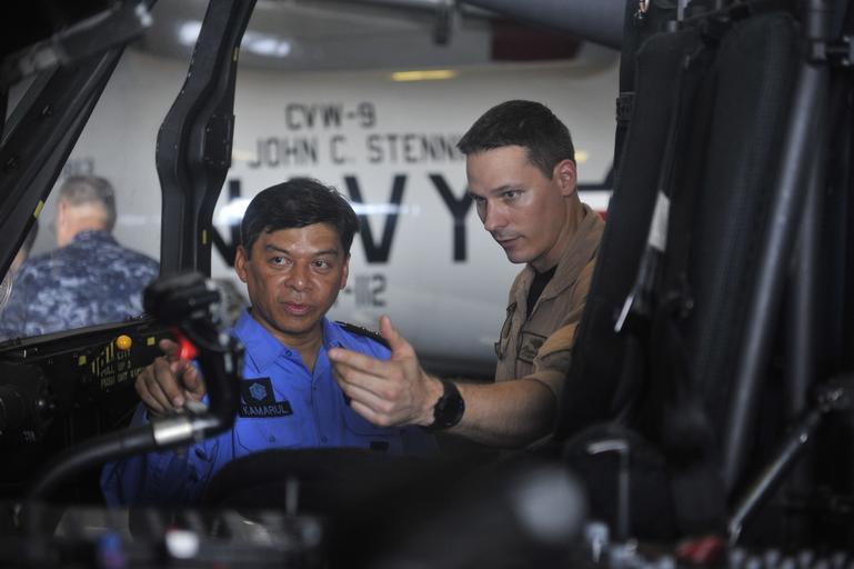 Keywords: US Navy 110909-N-EZ913-281 John C. Stennis hosted U.S. Ambassador to Malaysia Paul W. Jones and 21 distinguished visitors from the armed forces of.jpg en STRAIT OF MALACCA Sept 9 2011 Naval Air Crewman 2nd Class Shawn Lindsey assigned to the Raptors of Helicopter Maritime Strike Squadron HSM 71 explains the flight controls of an MH-60R Sea Hawk helicopter to Vice Adm Datuk Ahmad Kamarulzaman bin Hj Ahmad Badaruddin Malaysia's Joint Forces Commander aboard the Nimitz-class aircraft carrier USS John C Stennis CVN 74 John C Stennis hosted U S Ambassador to Malaysia Paul W Jones and 21 distinguished visitors from the armed forces of Malaysia U S Navy photo by Mass Communication Specialist 3rd Class Dugan Flynn/Released 2011-09-09 110909-N-EZ913-281 Navy http //www navy mil/view_image asp id 107152 U S Navy photo by Mass Communication Specialist 3rd Class Dugan Flynn PD-USGov-Military-Navy Guests aboard USS John C Stennis CVN-74 |