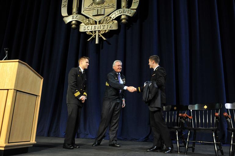 | Keywords: US Navy 111019-N-DT975-003 Jeffrey R. Immelt, chairman and CEO of General Electric and a member of the board of the Ronald Reagan Foundation is pre.jpg en ANNAPOLIS Md Oct 19 2011 Jeffrey R Immelt chairman and CEO of General Electric and a member of the board of the Ronald Reagan Foundation is presented with a Navy jacket after delivering the U S Naval Academy Lecture at Alumni Hall Immelt spoke of the lessons and successes of President Reagan's military expansion and leadership U S Navy photo by David Tucker/Released 2011-10-19 111019-N-DT975-003 Navy http //www navy mil/view_image asp id 109160 U S Navy photo by David Tucker PD-USGov-Military-Navy United States Naval Academy |