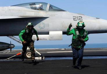Keywords: US Navy 111024-N-OY799-214 Aviation Boatswain's Mate (Equipment) 3rd Class Gabriel Garcia and Aviation Boatswain's Mate (Equipment) 3rd Class Luong.jpg en ARABIAN SEA Oct 24 2011 Aviation Boatswain's Mate Equipment 3rd Class Gabriel Garcia and Aviation Boatswain's Mate Equipment 3rd Class Luong Susan signal a clear flight deck aboard the Nimitz-class aircraft carrier USS John C Stennis CVN 74 John C Stennis is deployed to the U S 5th Fleet area of responsibility conducting maritime security operations and support missions as part of Operations Enduring Freedom and New Dawn U S Navy photo by Mass Communication Specialist 3rd Class Kenneth Abbate/Released 2011-10-24 111024-N-OY799-214 Navy http //www navy mil/view_image asp id 109443 U S Navy photo by Mass Communication Specialist 3rd Class Kenneth Abbate PD-USGov-Military-Navy Aboard USS John C Stennis CVN-74 |