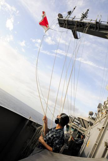 Keywords: US Navy 111103-N-HU799-017 Quartermaster Seaman Aaron Zarate, from Dickinson, Texas, raises the foxtrot flag to signal the beginning of fixed wing.jpg en ARABIAN SEA Nov 3 2011 Quartermaster Seaman Aaron Zarate from Dickinson Texas raises the foxtrot flag to signal the beginning of fixed wing flight operations aboard the Nimitz-class aircraft carrier USS John C Stennis CVN 74 John C Stennis is deployed to the U S 5th Fleet area of responsibility conducting maritime security operations and support missions as part of Operations Enduring Freedom and New Dawn U S Navy photo by Mass Communication Specialist 2nd Class Kathleen O'Keefe/Released 2011-11-03 111103-N-HU799-017 Navy http //www navy mil/view_image asp id 109891 U S Navy photo by Mass Communication Specialist 2nd Class Kathleen O'Keefe PD-USGov-Military-Navy Aboard USS John C Stennis CVN-74 |