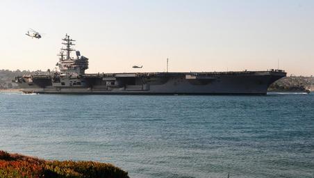 | Keywords: US Navy 111103-N-KB563-095 SH-60S Sea Hawk helicopters fly above the aircraft carrier USS Ronald Reagan (CVN 76) as it returns to homeport.jpg en SAN DIEGO Nov 3 2011 SH-60S Sea Hawk helicopters fly above the aircraft carrier USS Ronald Reagan CVN 76 as it returns to homeport after conducting routine training exercises in the Pacific Ocean U S Navy photo by Mass Communication Specialist 2nd Class Michael Russell/Released 2011-11-03 111103-N-KB563-095 Navy http //www navy mil/view_image asp id 109996 U S Navy photo by Mass Communication Specialist 2nd Class Michael Russell PD-USGov-Military-Navy General views of USS Ronald Reagan CVN-76 |