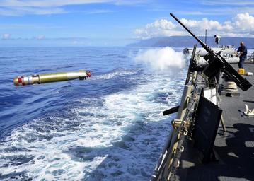 Keywords: US Navy 111115-N-RI884-263 A MK 46 Mod 5A exercise torpedo is launched from the guided-missile destroyer USS O'Kane (DDG 77) during the integrated.jpg en PACIFIC OCEAN Nov 15 2011 A MK 46 Mod 5A exercise torpedo is launched from the guided-missile destroyer USS O'Kane DDG 77 during the integrated maritime exercise Koa Kai Koa Kai prepares independent deployers in multiple warfare areas and provides training in a multi-ship environment U S Navy photo by Mass Communication Specialist 2nd Class Daniel Barker/Released 2011-11-15 111115-N-RI884-263 Navy http //www navy mil/view_image asp id 110562 U S Navy photo by Mass Communication Specialist 2nd Class Daniel Barker PD-USGov-Military-Navy USS O'Kane DDG-77 Torpedo launching |