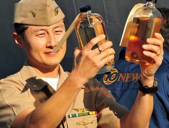 Keywords: US Navy 111116-N-HC601-004 Lt. Cmdr. Frank Kim, fuel officer for Naval Supply Systems Command, Fleet Logistics Center San Diego, compares sample bo.jpg en SAN DIEGO Nov 16 2011 Lt Cmdr Frank Kim fuel officer for Naval Supply Systems Command Fleet Logistics Center San Diego compares sample bottles of traditional diesel fuel marine and an algae-derived alternative fuel during the Navy's largest shipboard alternative fuel test at Naval Base Point Loma in San Diego The fuel department of Naval Supply Systems Command Fleet Logistics Center San Diego loaded the Self Defense Test Ship with 20 000 gallons of the alternative fuel for the demonstration U S Navy photo by Candice Villarreal/Released 2011-11-16 111116-N-HC601-004 Navy http //www navy mil/view_image asp id 110891 U S Navy photo by Candice Villarreal PD-USGov-Military-Navy Images from US Navy location San Diego California |