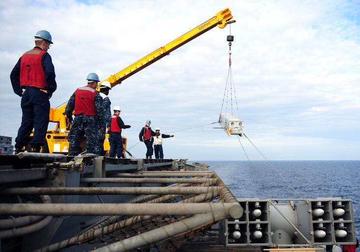 Keywords: US Navy 111129-N-QL471-166 Sailors lower a weapon case from the flight deck of the aircraft carrier USS George H.W. Bush (CVN 77).jpg en MEDITERRANEAN SEA Nov 15 2011 Sailors lower a weapon case from the flight deck of the aircraft carrier USS George H W Bush CVN 77 George H W Bush is supporting maritime security operations and theater security cooperation efforts in the U S 6th Fleet area of responsibility U S Navy photo by Mass Communication Specialist 3rd Class Billy Ho/Released 2011-11-15 111129-N-QL471-166 Navy http //www navy mil/view_image asp id 111169 U S Navy photo by Mass Communication Specialist 3rd Class Billy Ho PD-USGov-Military-Navy Aboard USS George H W Bush CVN-77 |