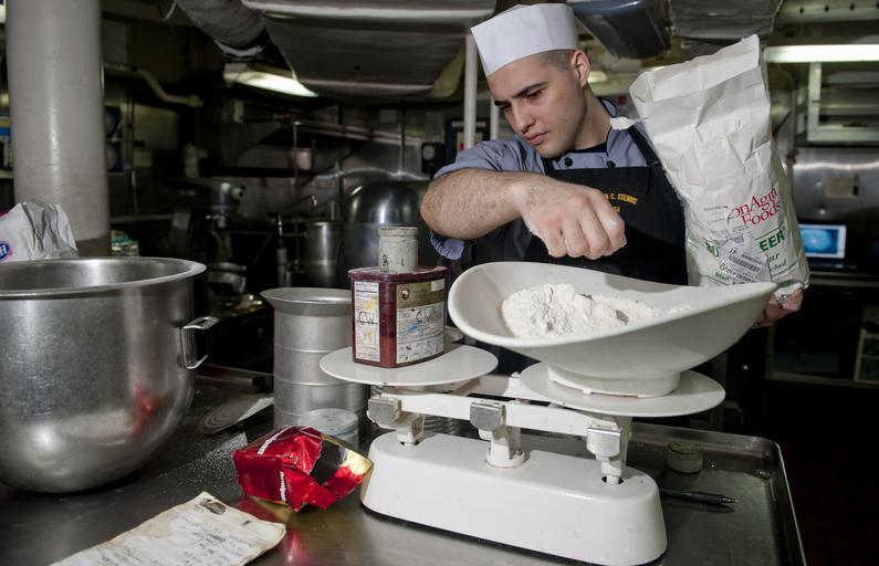 | Keywords: US Navy 111220-N-OY799-007 Culinary Specialist Seaman Matthew Ryback measures flour in preparation for the Christmas meal in the bake shop aboard t.jpg en ARABIAN GULF Dec 20 2011 Culinary Specialist Seaman Matthew Ryback measures flour in preparation for the Christmas meal in the bake shop aboard the Nimitz-class aircraft carrier USS John C Stennis CVN 74 John C Stennis is deployed to the U S 5th Fleet area of responsibility supporting Operation Enduring Freedom U S Navy photo by Mass Communication Specialist 3rd Class Kenneth Abbate/Released 2011-12-20 111220-N-OY799-007 Navy http //www navy mil/view_image asp id 112607 U S Navy photo by Mass Communication Specialist 3rd Class Kenneth Abbate PD-USGov-Military-Navy Food preparation aboard USS John C Stennis CVN-74 |