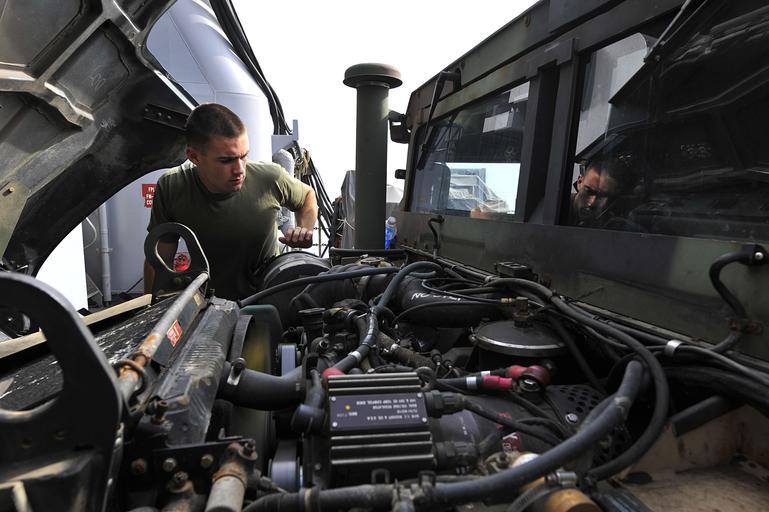 | Keywords: US Navy 111228-N-KS651-092 A Sailor performs maintenance on a Humvee.jpg en INDIAN OCEAN Dec 28 2011 Cpl Cody Sterns from the 11th Marine Expeditionary Unit 11th MEU performs maintenance on a Humvee aboard the amphibious dock landing ship USS Pearl Harbor LSD 52 Pearl Harbor and embarked Marines from the 11th MEU are on deployment conducting operations in the U S 7th fleet area of responsibility as part of the Makin Island Amphibious Ready Group U S Navy photo by Mass Communication Specialist 2nd Class Jason Behnke/Released 2011-12-28 111228-N-KS651-092 Navy http //www navy mil/view_image asp id 112839 U S Navy photo by Mass Communication Specialist 2nd Class Jason Behnke PD-USGov-Military-Navy Aboard USS Pearl Harbor LSD-52 |