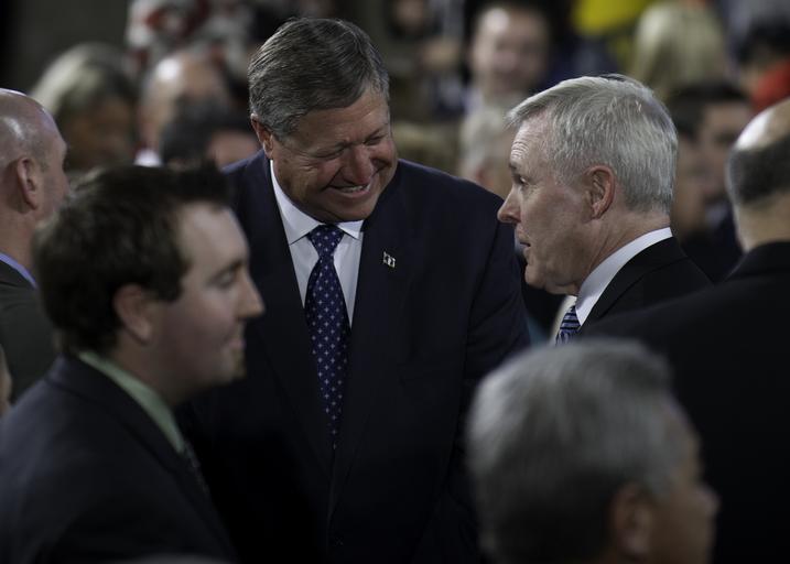 | Keywords: US Navy 120126-N-AC887-001 Secretary of the Navy (SECNAV) the Honorable Ray Mabus, right, shares a laugh with Secretary of the Air Force Michael D.jpg en AURORA Col Jan 26 2012 Secretary of the Navy SECNAV the Honorable Ray Mabus right shares a laugh with Secretary of the Air Force Michael Donley at Buckley Air Force Base Mabus and Donley were on hand to hear President Barack Obama deliver remarks on the administration's energy initiatives including the Department of the Navy's plan to obtain one gigawatt of power from renewable sources U S Navy photo by Chief Mass Communication Specialist Sam Shavers/Released 2012-01-26 120126-N-AC887-001 Navy http //www navy mil/view_image asp id 114163 U S Navy photo by Chief Mass Communication Specialist Sam Shavers PD-USGov-Military-Navy Buckley Air Force Base Michael B Donley Ray Mabus |