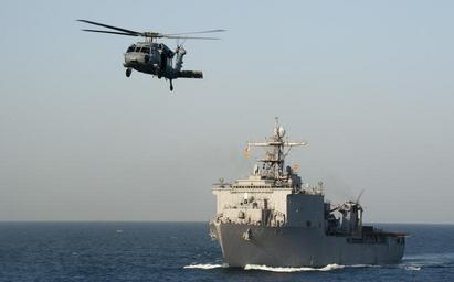 | Keywords: US Navy 120129-N-PB383-306 An MH-60 Sea Hawk helicopter embarked aboard the Military Sealift Command dry cargo and ammunition ship USNS Charles Dre.jpg en ARABIAN GULF Jan 29 2011 An MH-60 Sea Hawk helicopter embarked aboard the Military Sealift Command dry cargo and ammunition ship USNS Charles Drew T-AKE 10 departs the amphibious dock landing ship USS Pearl Harbor LSD 52 after delivering supplies during an underway replenishment Pearl Harbor and embarked Marines from the 11th Marine Expeditionary Unit 11th MEU are on deployment conducting operations as part of the Makin Island Amphibious Ready Group U S Navy photo by Mass Communication Specialist 2nd Class Dominique Pineiro/Released 2011-01-29 120129-N-PB383-306 Navy http //www navy mil/view_image asp id 114691 U S Navy photo by Mass Communication Specialist 2nd Class Dominique Pineiro PD-USGov-Military-Navy Aboard USNS Charles Drew T-AKE-10 Watercraft in motion USS Pearl Harbor LSD-52 |