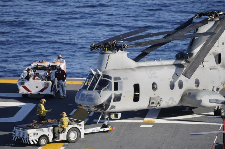 | Keywords: US Navy 120208-N-ZZ999-013 Aviation boatswain's mates maneuver a CH-46 Sea Knight helicopter assigned to Marine Medium Helicopter Squadron (HMM) 36.jpg en SAN CLEMENTE ISLAND Calif Feb 8 2012 Aviation boatswain's mates maneuver a CH-46 Sea Knight helicopter assigned to Marine Medium Helicopter Squadron HMM 365 the Purple Foxes on the flight deck of the amphibious assault ship USS Peleliu LHA 5 Peleliu is participating in Iron Fist 2012 a training exercise between U S Marines and the Japan Ground Self-Defense Force designed to increase interoperability and amphibious capabilities throughout the U S 3rd and 7th Fleet areas of responsibility U S Navy photo by Mass Communication Specialist 3rd Class Ian Campbell/Released 2012-02-08 120208-N-ZZ999-013 Navy http //www navy mil/view_image asp id 115413 U S Navy photo by Mass Communication Specialist 3rd Class Ian Campbell PD-USGov-Military-Navy Aboard USS Peleliu LHA-5 CH-46 US Marine Corps Marine Medium Helicopter Squadron 365 |