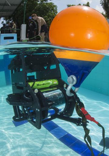 Keywords: US Navy divers discuss their underwater robot with Colombian divers as part of Southern Partnership Station '14 140820-N-IP743-582.jpg en U S Navy divers assigned to Mobile Diving and Salvage Unit Two MDSU 2 Company 2-1 and Colombian dive students from the Departamento de Buceo y Salvamento maneuver a remote operated underwater vehicle through a pool course The MDSU 2 divers are in Colombia working with the Armada de la Republica de Colombia as part of Southern Partnership Station 2014 Southern Partnership Station 2014 is a U S Navy deployment focused on subject matter expert exchanges with partner nation militaries and security forces in Central and South America and the Caribbean U S military teams work with partner nation forces during naval-focused training exercises military-to-military engagements and community relations projects in an effort to enhance partnerships with regional maritime activities and improve the operational readiness of participants U S Navy photo by Mass Communication Specialist 1st Class Brett Cote/Released 2014-08-20 Petty Officer 1st Class Brett Cote https //www dvidshub net/image/1516597 140820-N-IP743-582 2014-08-21 17 45 CARTAGENA CO PD-USGov-Military-Navy United States Navy Mobile Diving and Salvage Unit Two Southern Partnership Station 2014 Images from DoD uploaded by Fæ