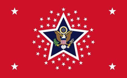 | Keywords: US Presidential Flag Army 1898.svg  The Army's presidential flag from 1898 The Navy already had a presidential flag but the design was very close to the Army's infantry flag so they chose a completely different design The Army defined both a flag and a color; the color was the same design but smaller made of silk and had a fringe of silver and gold The flag was technically replaced with the Navy version in 1901 but the use of the color continued along with the other flag design until they were both replaced by a new flag designed during President Wilson's term in 1916 The flag was designed by Frederick D Owen a civilian working in the War Department The regulation which officially defined the flag was General Orders No 13 issued on March 28 1898 It read http //www tioh hqda pentagon mil/SealsEmblems/PresidentOfTheUnitedStates htm <blockquote> 212a The flag of the President shall be of scarlet bunting measuring 13 feet fly and 8 feet hoist having a hem on the hoist 3 inches wide and provided with an eyelet at each end for hoisting and lowering In each of the four corners shall be a five-pointed white star with one point upward The points of these stars lie in the circumference of an imaginary circle of 5 inches radius The centers of these imaginary circles which coincide with the centers of these stars are 18 inches from the short sides and 14 inches from the long sides of the flag In the center of the flag shall be a large fifth star also of five points which lie in the circumference of an imaginary circle of 2 feet 9 inches radius The center of this circle is the point of intersection of the diagonals of the flag The re-entering angles of this large star lie in the circumference of an imaginary circle of 16 inches radius with the same center as before Inside of the star thus outlined is a parallel star separated from it by a band of white 3 inches wide This inner star forms a blue field upon which is the official coat of arms of the United States as determined by the State Department the device being located by placing the middle point of the line dividing the chief from the paleways of the escutcheon upon the point of intersection of the diagonals of the flag and thus coinciding with the center of the large center star On the scarlet field around the large star are other white stars one for each State equally scattered in the re-entering angles and all included within the circumference of a circle of 3 feet 3 inches radius whose center is the center of the large star </blockquote> The color was defined the same way <blockquote> 214b Of scarlet silk 6 feet 6 inches fly and 4 feet on the pike which shall be 10 feet long including ferrule and head The head shall consist of a globe 3 inches in diameter surmounted by an American eagle alert 4 inches high In each of the four corners shall be a five pointed white star The points of these stars lie in the circumference of an imaginary circle of 2 ½ inches radius The centers of these imaginary circles which coincide with the centers of these stars are 9 inches from the short sides and 7 inches from the long sides of the color In the center of the color shall be a large fifth star also of five points which lie in the circumference of an imaginary circle of 16 ½ inches radius The center of this circle is the point of intersection of the diagonals of the color The re-entering angles of this large star lie in the circumference of an imaginary circle of 8 inches radius with the same center as before Inside of the star thus outlined is a parallel star separated from it by a band of white 1 ½ inches wide This inner star forms a blue field upon which is the official coat of arms of the United States as determined by the State Department the device being located by placing the middle point of the line dividing the chief from the paleways of the escutcheon upon the point of intersection of the diagonals of the color and thus coinciding with the center of the large center star On the scarlet field around the large star are other white stars one for each State equally scattered in the re-entering angles and all included within the circumference of a circle of 19 ½ inches radius whose center is the center of the large star The design letters figures and stars are to be embroidered in silk the same on both sides of the colors The edges of the color are to be trimmed with knotted fringe of silver and gold 3 inches wide and one cord having two tassels 8 feet 6 inches long and made of red white and blue silk intermixed </blockquote> Self-made following the precise dimensions from the original specifications SVG Great Seal taken from File US-OfficeOfManagementAndBudget-Seal svg a U S Government work and slightly altered and colorized to match version of actual flag seen in File Army Presidential Flag QMMuseum jpg 1898 U S Government <gallery> File Army Presidential Flag QMMuseum jpg Photo of 1908 version of the color with 46 stars File US Presidential Flag Navy 1899 svg Navy presidential flag File US Presidential Color Army 1912 svg Updated design from 1912 </gallery> PD-USGov Flag of the President of the United States 8 Personal flags of the United States Army SVG flags - military of the United States SVG flags - historical of the United States Blue green red white yellow flags E Pluribus Unum Flags with arrows Flags with banners Flags with branches Flags with one blue star Flags with eagles Flags with more than twenty stars Flags with mottos Flags with white five-pointed stars Five-pointed stars |